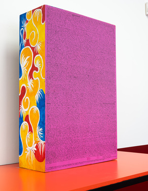 Dorothy Iannone has developed her artistic practice in paintings, artist’s books, video installations, sculptures, and sound works. In her visual and writing oeuvre, she has created a particular relationship between text, image, audio, and sculptural objects, emphasising their narrative and fictional dimension. In 1975, her close friend, the artist Robert Filliou, wrote: “Dorothy Iannone has been investigating through her visual work, her books, and her records, the world of love and loving styles. [...] She is a freedom fighter and a forceful and dedicated artist. Her aim is no less than human liberation.” Iannone examines topics related to female sexuality, which has led to her work being censored on several occasions. She refers to feelings and emotions, creating an erotic iconography largely inspired by non-Western imaginaries, where she passionately describes her intimate friendships and relationships with artists and lovers. For many years, she was associated both personally and artistically with Fluxus. Her transdisciplinary practice establishes a dialogue with the neo-avant-garde movements of the 1960s, 70s, and 80s.